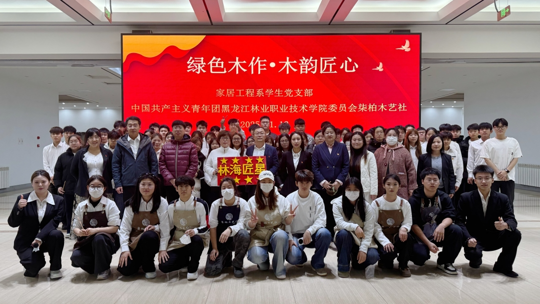 为践行绿色环保理念,传承木艺文化,近日,家居工程系学生党支部联合柒柏木艺社在实训楼一楼大厅成功举办“绿色木作 木韵匠心”主题活动。家居工程系党员教师、学生党员、共青团员及2024级、2025级学生代表共同参与这场融合环保与文化的实践。