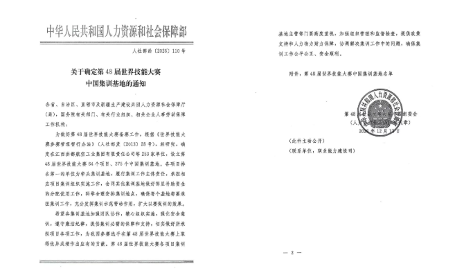 为做好第48届世界技能大赛备赛工作,根据《世界技能大赛参赛管理暂行办法》,国家人社部确定在江西洪都航空工业集团有限责任公司等253家单位,设立第48届世界技能大赛64个项目、375个中国集训基地,旨在充分发挥集训示范带动作用,扩大以赛促训的效果。