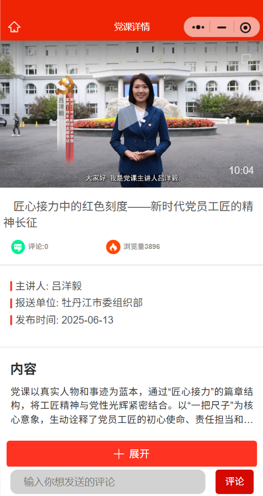 近日,学院党委精心打造的特色党课《匠心接力中的红色刻度》在省委组织部“党课开讲啦”平台正式上线。