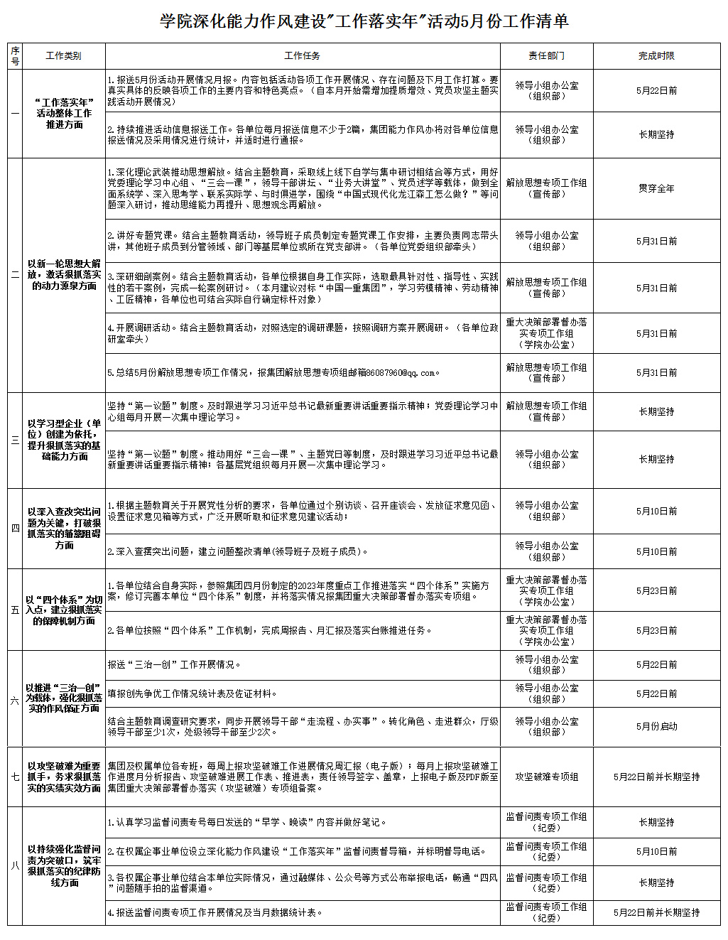 学院深化能力作风建设"工作落实年"活动5月份工作清单